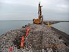 The work included rotary duplex drilling through the dike to facilitate installation of Multiple Pass Sleeve Port pipes followed by injection of balanced stable grout through the pipes into the dike. Approximately 640 lineal feet of the dike required treatment in order to reduce the permeability of the rockfill dike at location where the existing sheet piling was damaged. Drilling and grouting was completed through each zone of the rockfill dike including the armour stone (10 to 20 ton stones), underlayer stone (0.5 to 2.25 ton stones), core slag (2” diameter to 250 pound stones), and the filter slag (3/4” minus material).