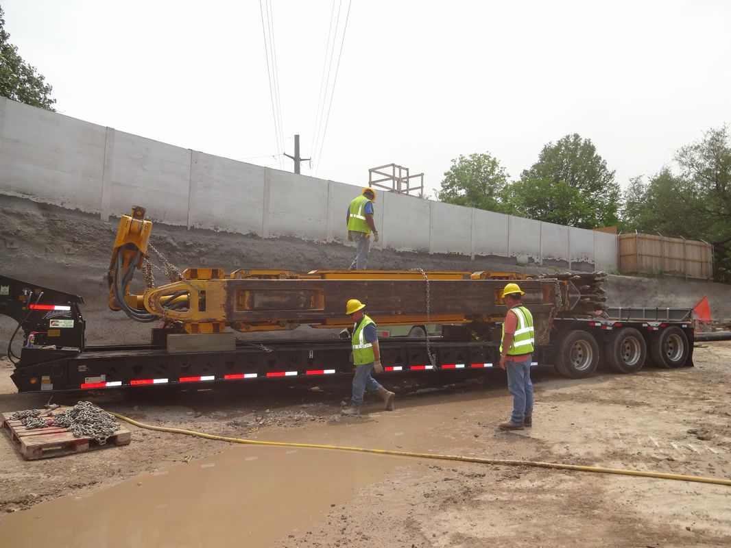 ACT used our Bauer CBC 32 equipped with a BC 32 trench cutter to create the excavation required to form the cutoff wall. Overlapping 39 inch wide (1 meter) panels were cut to create the wall. Primary and secondary panels were 9 feet long (2.8 meters) and overlapped 6 inches (150 mm) at each end forming a continuous wall. After the panels were cut and prior to concreting, rebar cages were lowered into each panel.